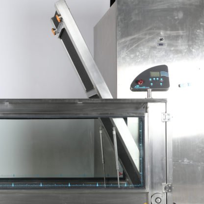 Dankzij de makkelijk toegankelijke (ramp inclusief) onderwaterloopband, voorzien van een aparte in- en uitgang kan iedere hond makkelijk in-en uit de loopband geraken. De hoeveelheid water, de temperatuur van het water en de snelheid van de band (0,5-16 km/u) kan allemaal eenvoudig worden geregeld. De loopband vult (en ledigt) zich op amper 120 seconden.